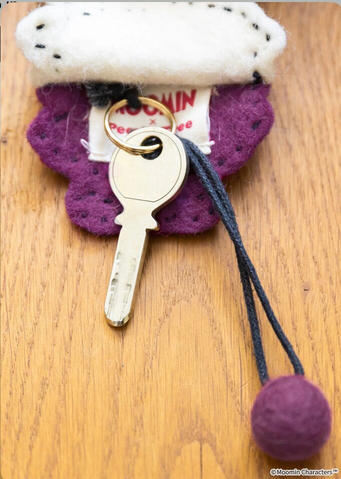ネパールの職人が一つひとつ手作業で仕上げた、温もりあふれるフェルトバッグに、白いリトルミイのキーチャームをプラス。