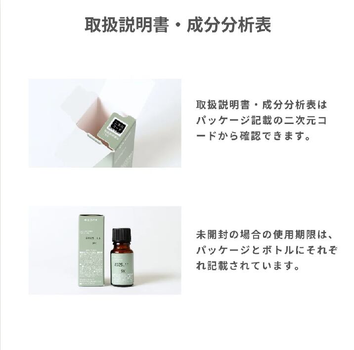 ●開封後は品質保持期限に関わらず、1年以内(柑橘系精油は6か月以内)を目安にご使用ください。