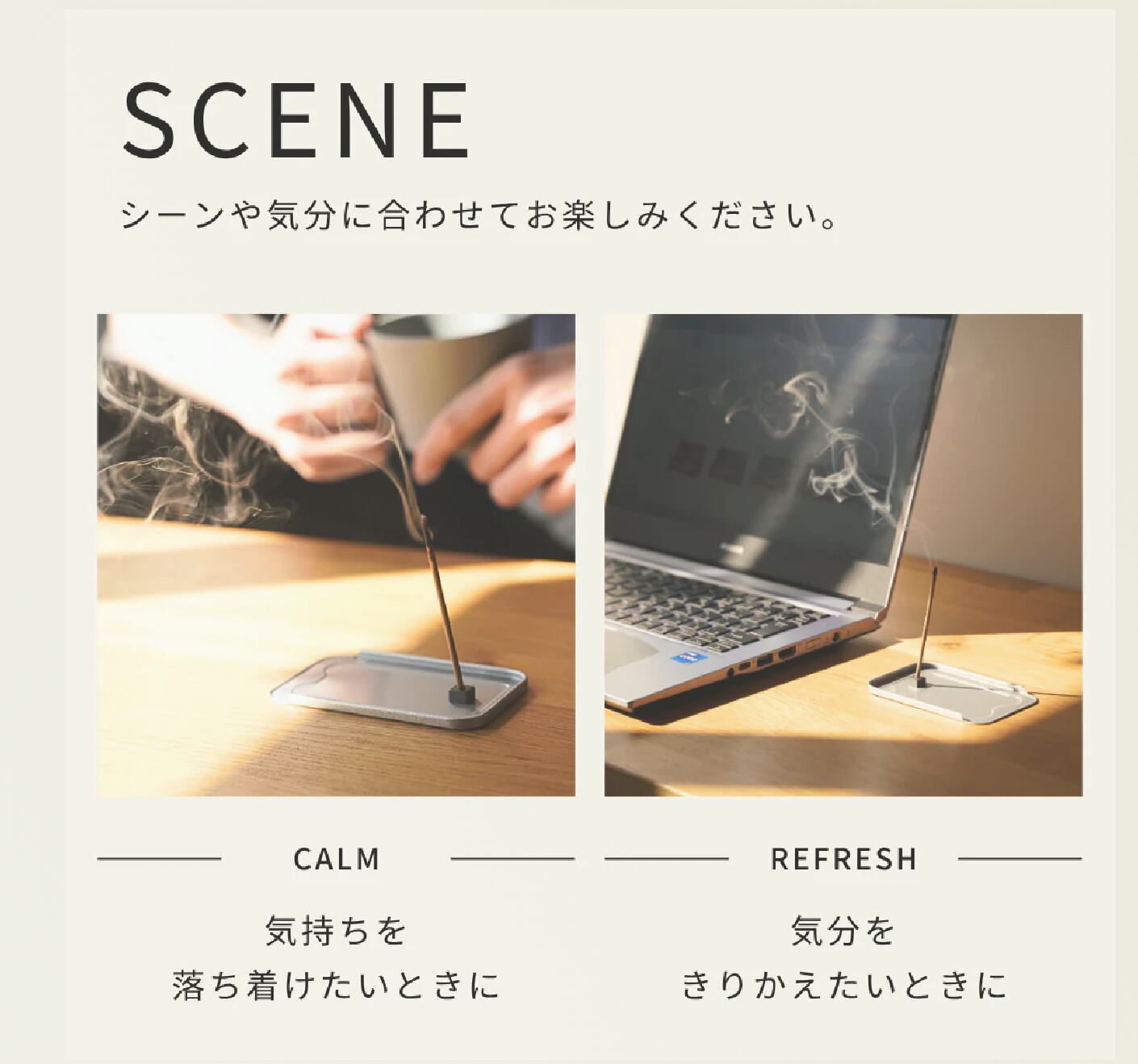 香りが空間に広がると、自然と呼吸が深くなり、余白のある時間が生まれます。
